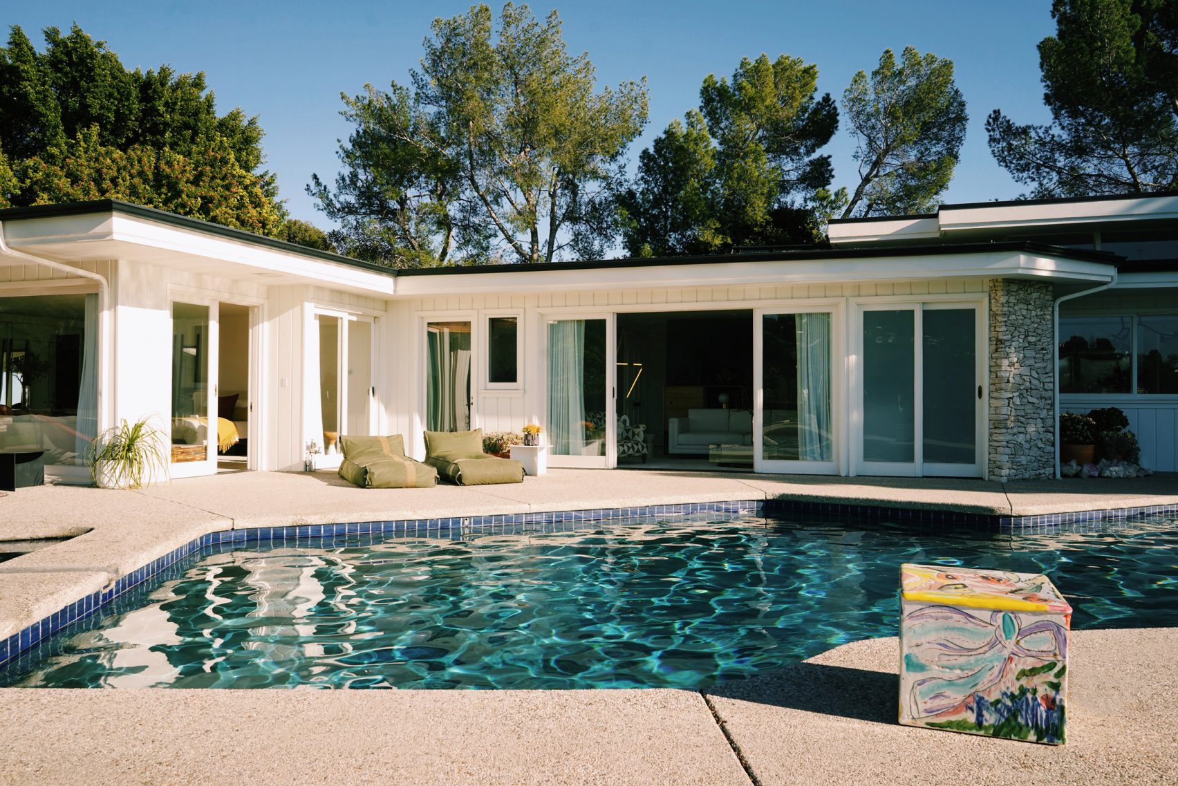 Očuvan je koncept velikih prozora od poda do plafona, koji pružaju prelep pogled na Los Anđeles, ali i zeleni travnjak sa bazenom u dvorištu.