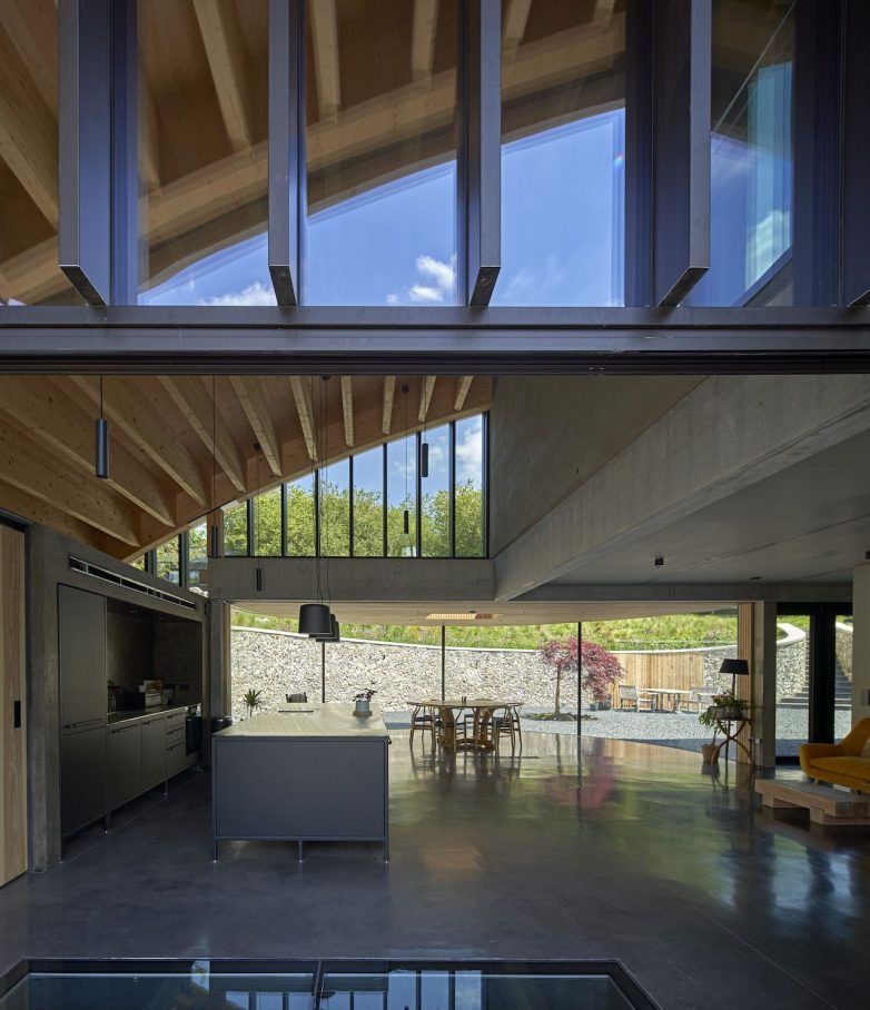 „Primarni koncept je bio vođen željom da se besprekorno integrišu objekat i pejzaž kako bi se osiguralo da novi dom ‘izlazi’ iz zemlje i konteksta“, kaže za portal Dezeen Dejvid Kirklend, suosnivač firme Kirkland Fraser Moor.