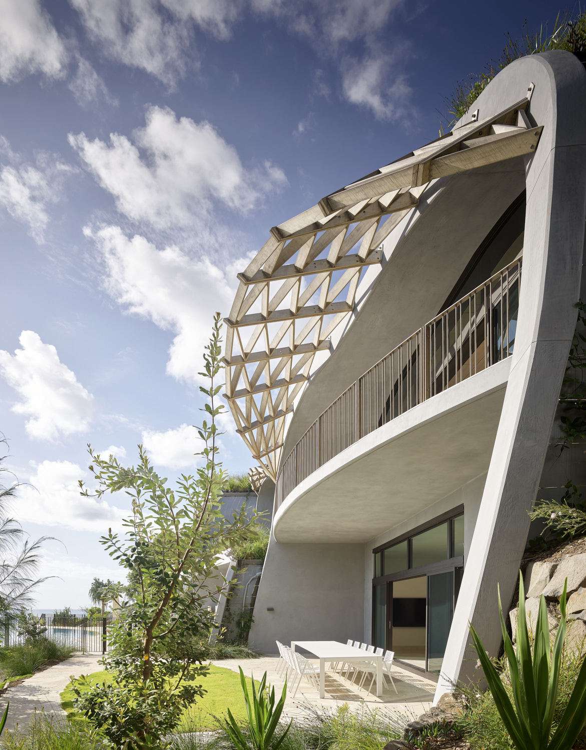 U realizaciju ovih ideja upustila se arhitektonska firma Noel Robinson Architects koji su osmisli objekat nazvan Domic od čak 1.350 kvadrata koji praktično uranja u peščana brda. Sa druge strane, njeno pročelje, koje je orijentisano ka istoku, ima otvoren pogled na Pacifik.