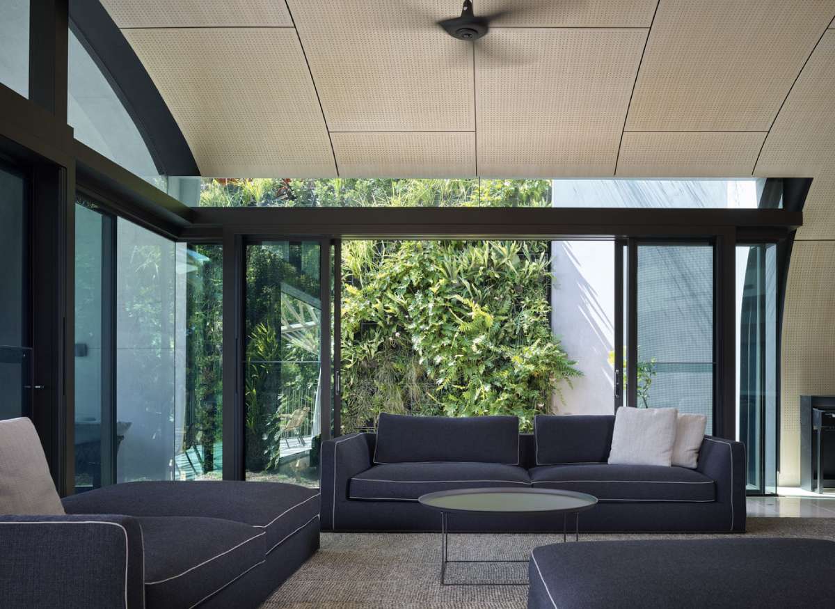 Zahvaljujući svim primenjenim materijalima, ukopavanju u teren i zaštiti od zapadnog sunca, u kući su obezbeđeni optimalni klimatski uslovi.