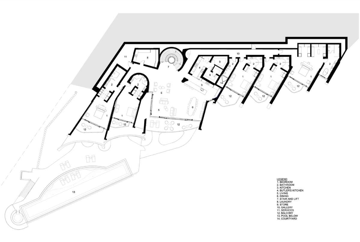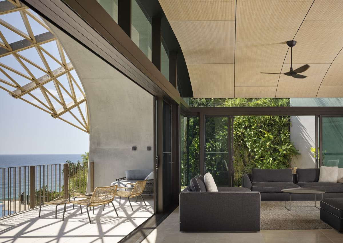 Klijenti su svoj željeni objekat opisali kao bezvremensku, praktičnu kuću za odmor, čiji visoki plafoni imaju minimalnu potporu u stubovima, a da celokupan objekat karakterišu prirodni materijali koji imaju čvrstu vezu sa okolnim vrtovima i pejzažem.