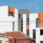 Puna ulična fasadna masa olakšana je uvlačenjem u zoni sprata, koje osim funkcionalne uloge lođe ima i estetski zadatak.