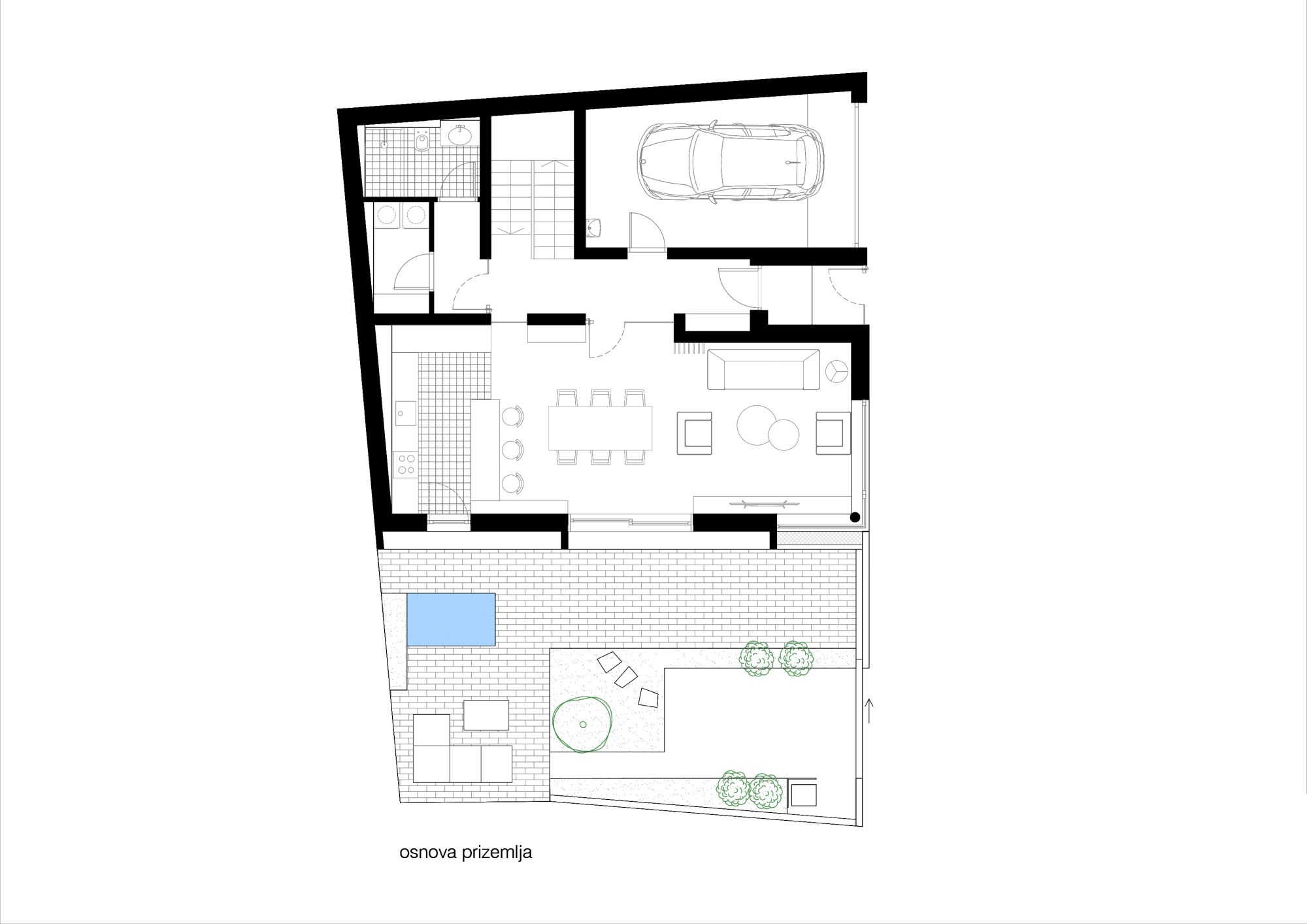 „Funkcija objekta je koncipirana kao jedna stambena jedinica kroz tri etaže sa organizacijom sadržaja po vertikali, te su dobijene jasne prostorne celine“ – dodaju iz KontraStudija.