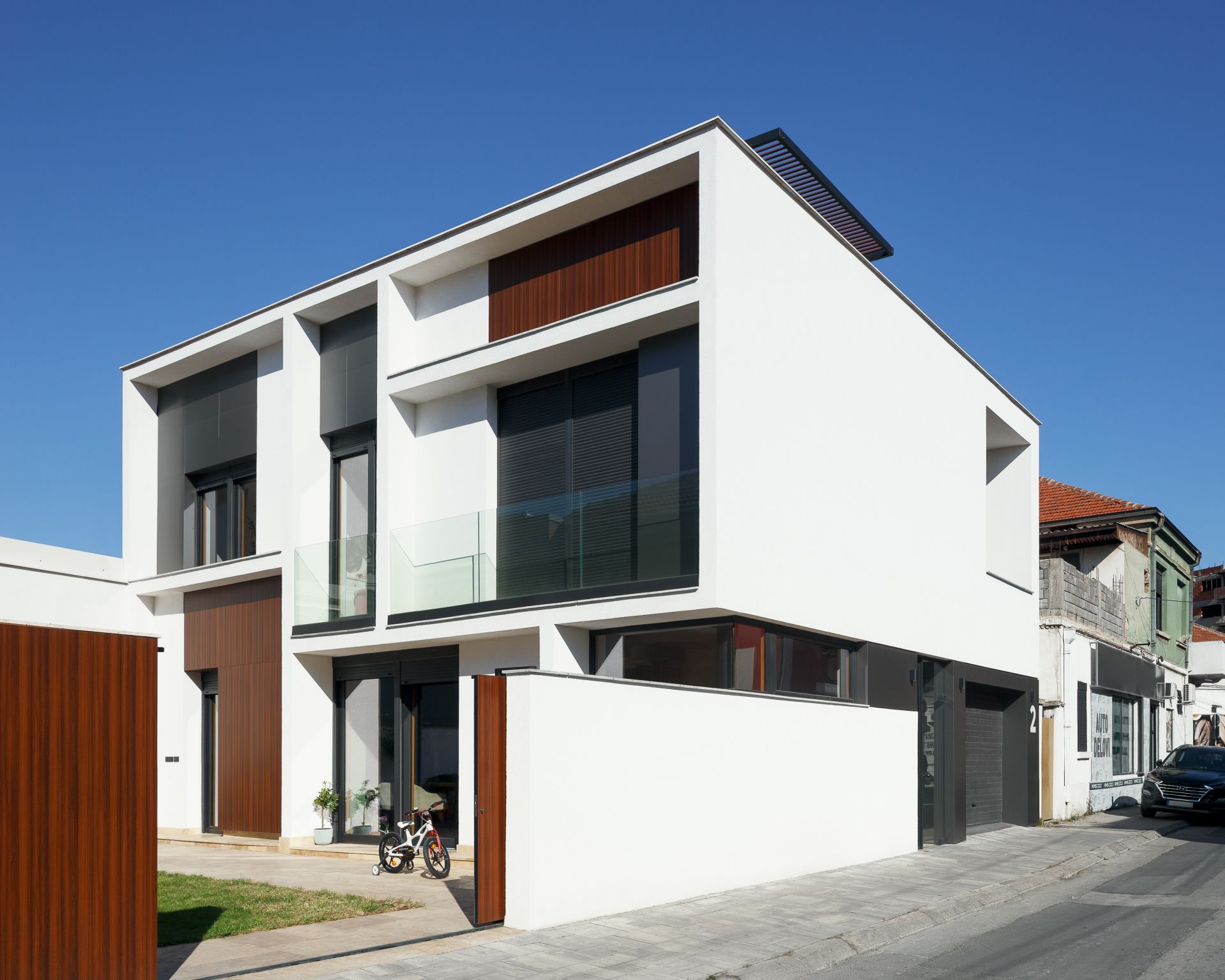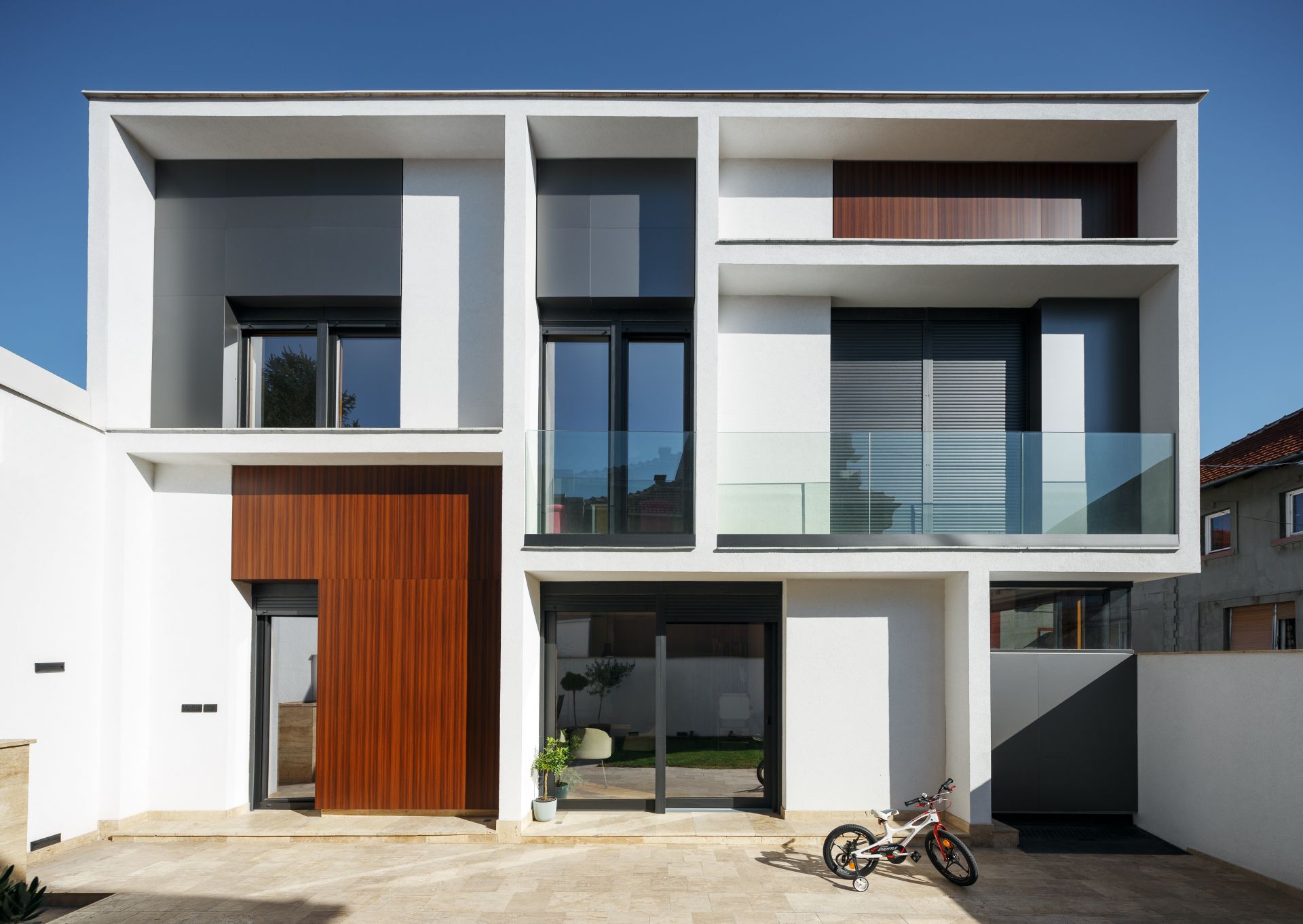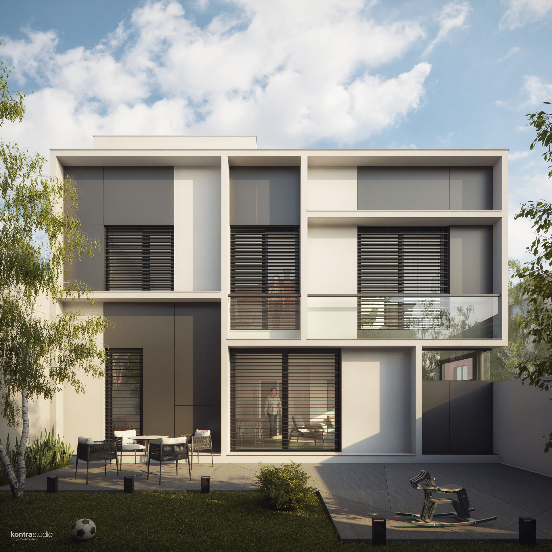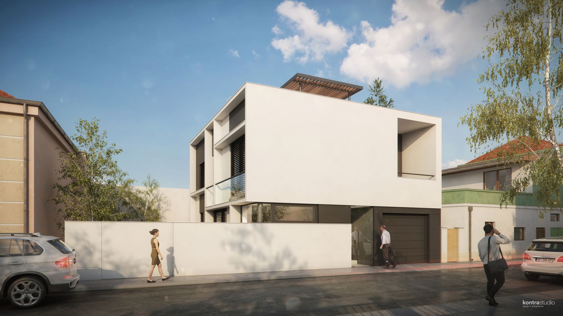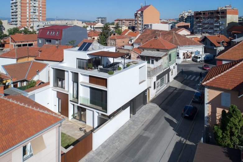Ključni izazovi ovde su bili urbanistički uslovi, potreba klijenta za privatnošću i energetska efikasnost. Prilično skladno, sva tri su rešena linijskom postavkom pune ulične fasadne mase i otvaranjem objekta ka jugu i unutrašnjem dvorištu, objašnjavaju za Gradnju iz KontraStudija.