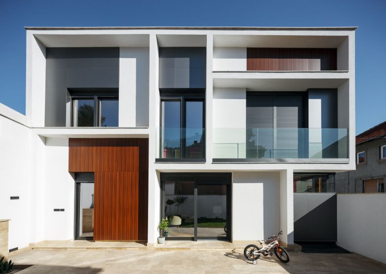 Kuća čiste kubične forme i minimalističkih fasadnih ravni rezultat je klijentove želje da se izoluje od gradske ulične buke i potrebe za privatnim otvorenim prostorom.