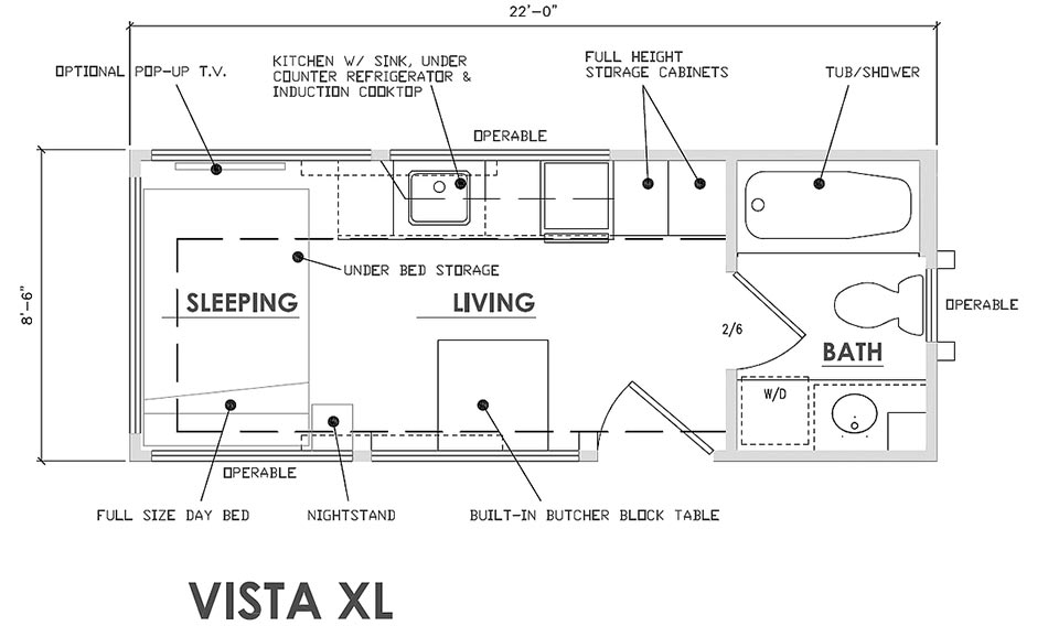 Ukoliko vas ne drži mesto, kuće na točkovima su idealna stvar za vas a na ove modele posebno treba obratiti pažnju. U pitanju su veoma dobro opremljene kuće putujuće dužine 7,6m, širine 2,5 metara i visine skoro 3 metra što je više od prosečne visine u stanogradnju. Sa ukupnom površinom od oko 15 m2 ova kuća na točkovima može biti vaša ukoliko za nju izdvojite oko 40.000 evra.