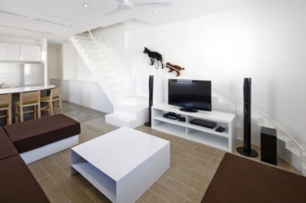 Arhitektonski biro 07BEACH isprojektovao je kuću imajući u vidu ne samo potrebe vlasnika već i dva psa različite visine. Gazda je zahtevao da se naprave dvostruke stepenice: jedne za ljude, a druge, posebne, za ova dva srećnika.