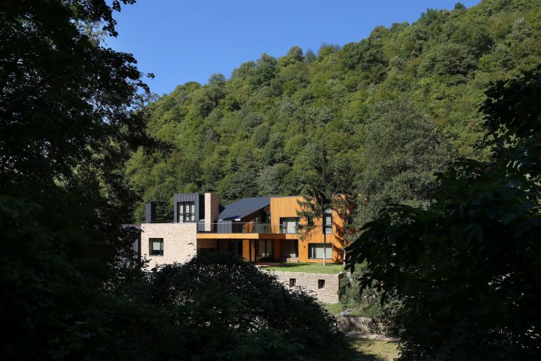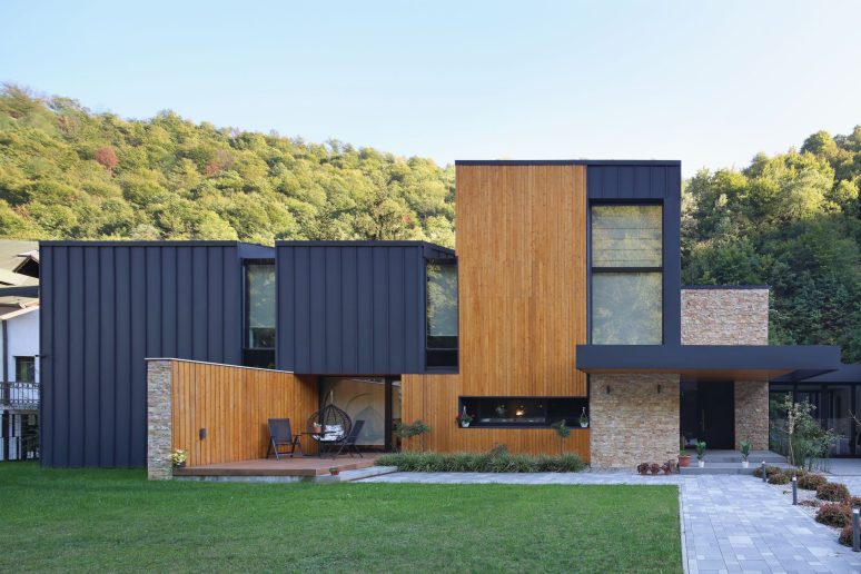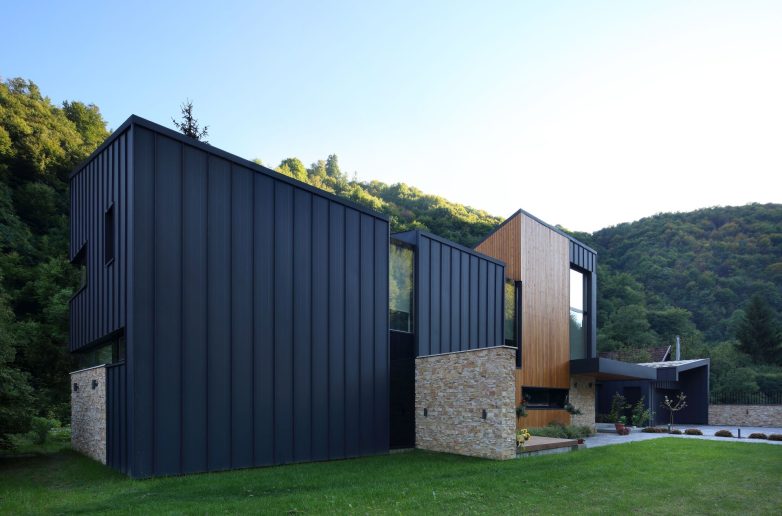 Blizina benzinske pumpe, frekventne saobraćajnice, ali i manjak sunca i višak vlage učinili su da ova kuća dobije dva lica kojima se štiti, odnosno, otvara prema reci i šumi.