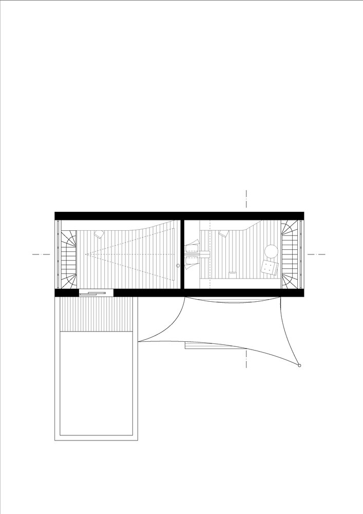 Potkrovlje je podeljeno na pola. Jedan deo pripada ateljeu sa izlazom na zeleni krov, dok je drugi u potpunosti pod dominacijom dece, koja kroz stakleni zabat imaju pogled na okolna brda.