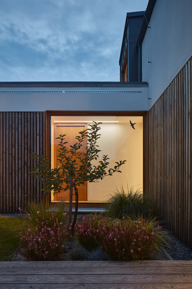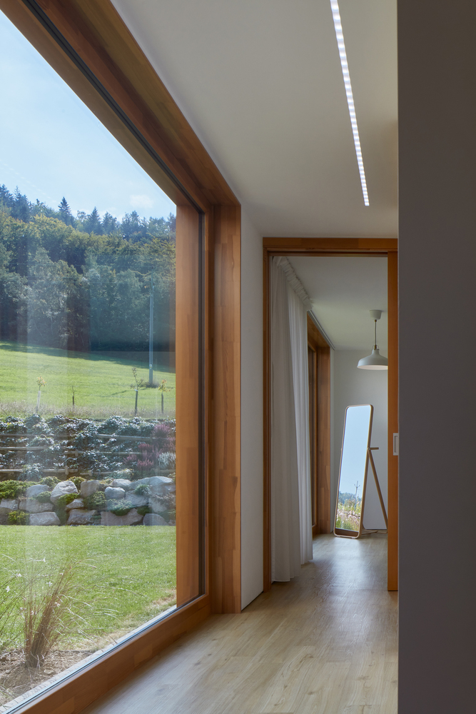 „Proširili smo livadu do krova spavaće sobe i izbrisali granice između terena i kuće. Odsustvo ograde samo podržava prirodno okruženje kuće“, objašnjavaju češki arhitekti.