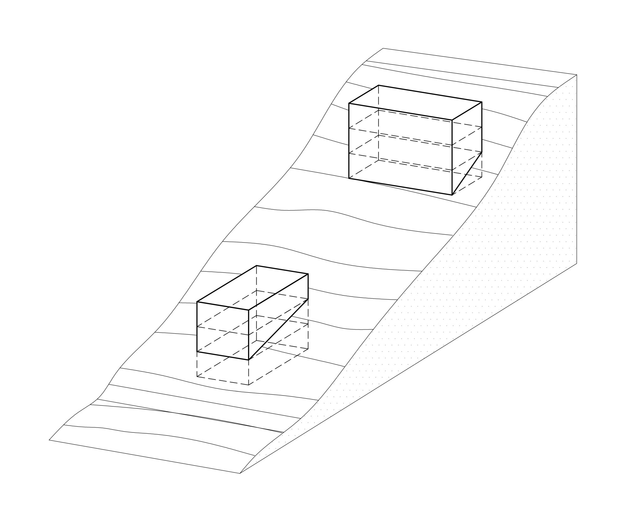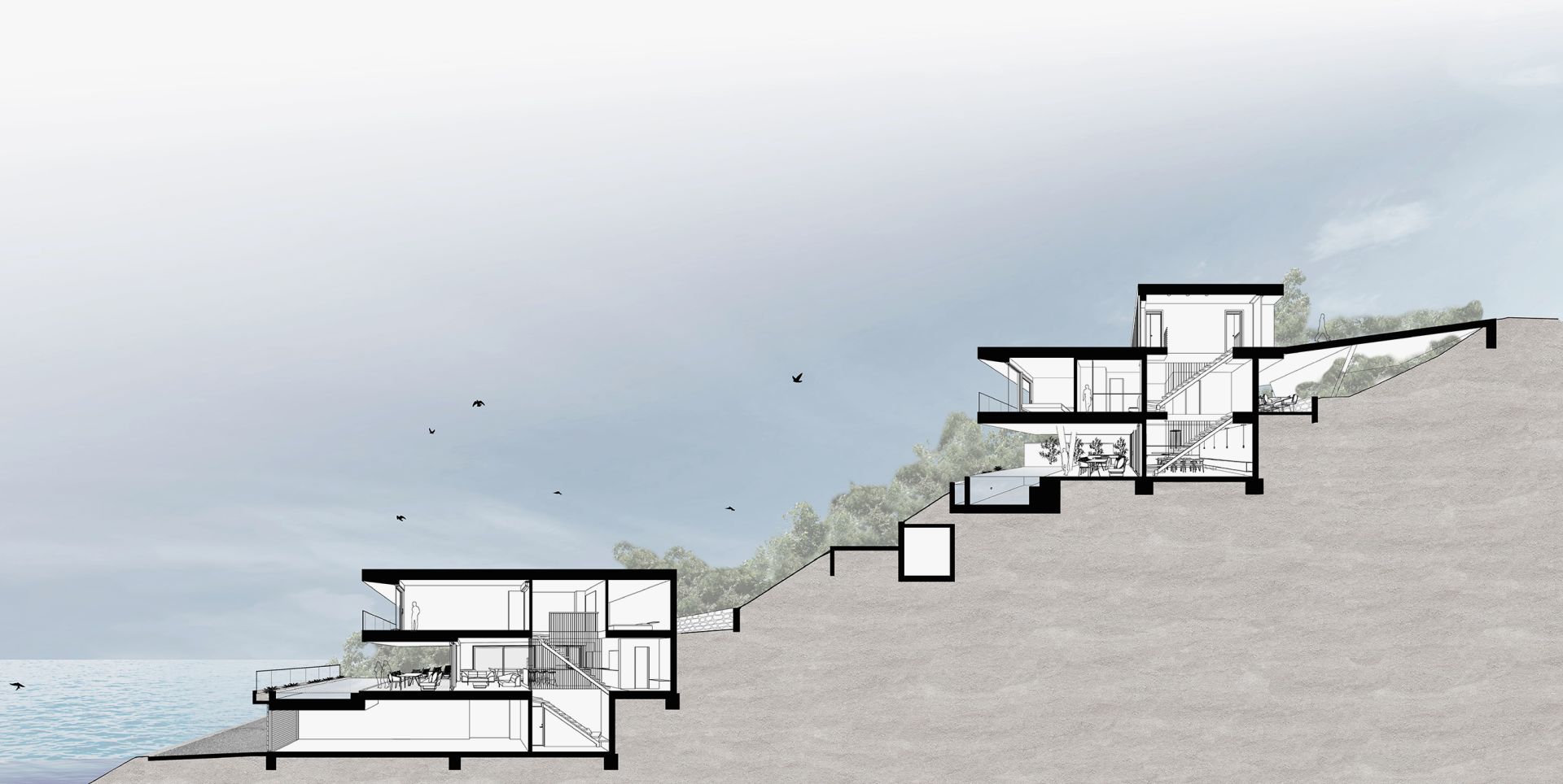 Kali je najveće mesto na zadarskim ostrvima, poznato ponajviše po ribarstvu. Na jednoj od retkih preostalih neizgrađenih parcela na ostrvu Ugljan, između dve saobraćajnice s visinskom razlikom od 21 metra, bilo je potrebno oblikovati dve kuće za odmor.