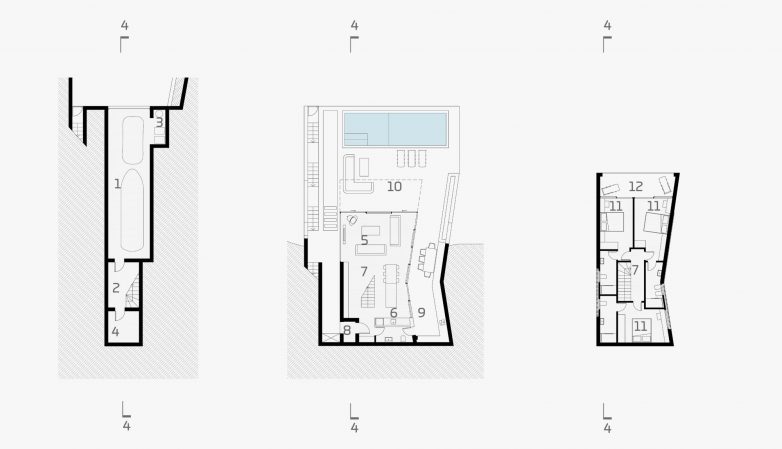 Tri približno jednaka kubusa s pogledom na more i Zadar postavljena su tako da svojim međuodnosima stvaraju raznolike spoljašnje prostore prijatne za boravak.