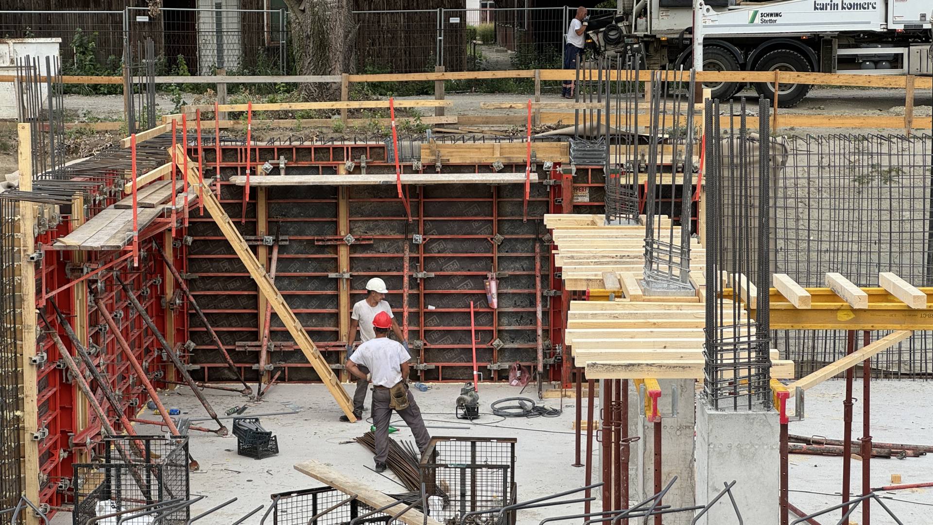 Četrnaest meseci kasnije, tokom toplotnog talasa u junu 2025. godine, ekipa Gradnje obrela se na gradilištu smeštenom na uglu ulica Bate Brkića i Seljačkih buna, te vam ovom prilikom slikom i rečju prenosimo najnovije i najzamljivije detalje vezane za izgradnju zdanja koje je u međuvremenu dostiglo svoju punu visinu, odnosno spratnost Po+P+2.