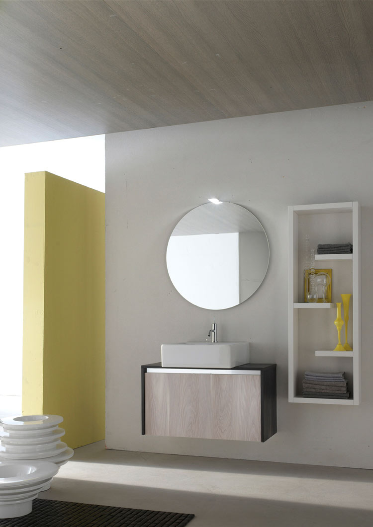 Zabluda je da se kružna ogledala ne slažu s umivaonicima pravougaone forme. Dokaz je ovaj komad nameštaja s izrazito oštim ivicama i kružnim ogledalom.
