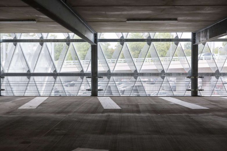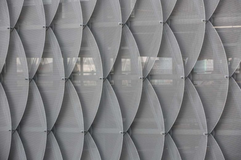 A u cilju pravljenja inovativne i upečatljive fasade, holandska kompanija Sorba izradila je oko 3.000 laserski sečenih panela od eloksiranog aluminijuma, koji imaju ivična ojačanja. Zahvaljujući tome što su paneli peforirani ali i sistem uklapanja panela, koji podseća na škrge, omogućen je prirodan tok vazduha i prirodnog osvetljenja, što rezultuje prijatnim ambijentom u unutrašnjosti garaže, piše ArchDaily.