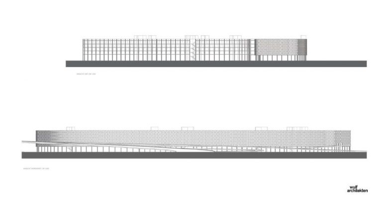 A u cilju pravljenja inovativne i upečatljive fasade, holandska kompanija Sorba izradila je oko 3.000 laserski sečenih panela od eloksiranog aluminijuma, koji imaju ivična ojačanja. Zahvaljujući tome što su paneli peforirani ali i sistem uklapanja panela, koji podseća na škrge, omogućen je prirodan tok vazduha i prirodnog osvetljenja, što rezultuje prijatnim ambijentom u unutrašnjosti garaže, piše ArchDaily.