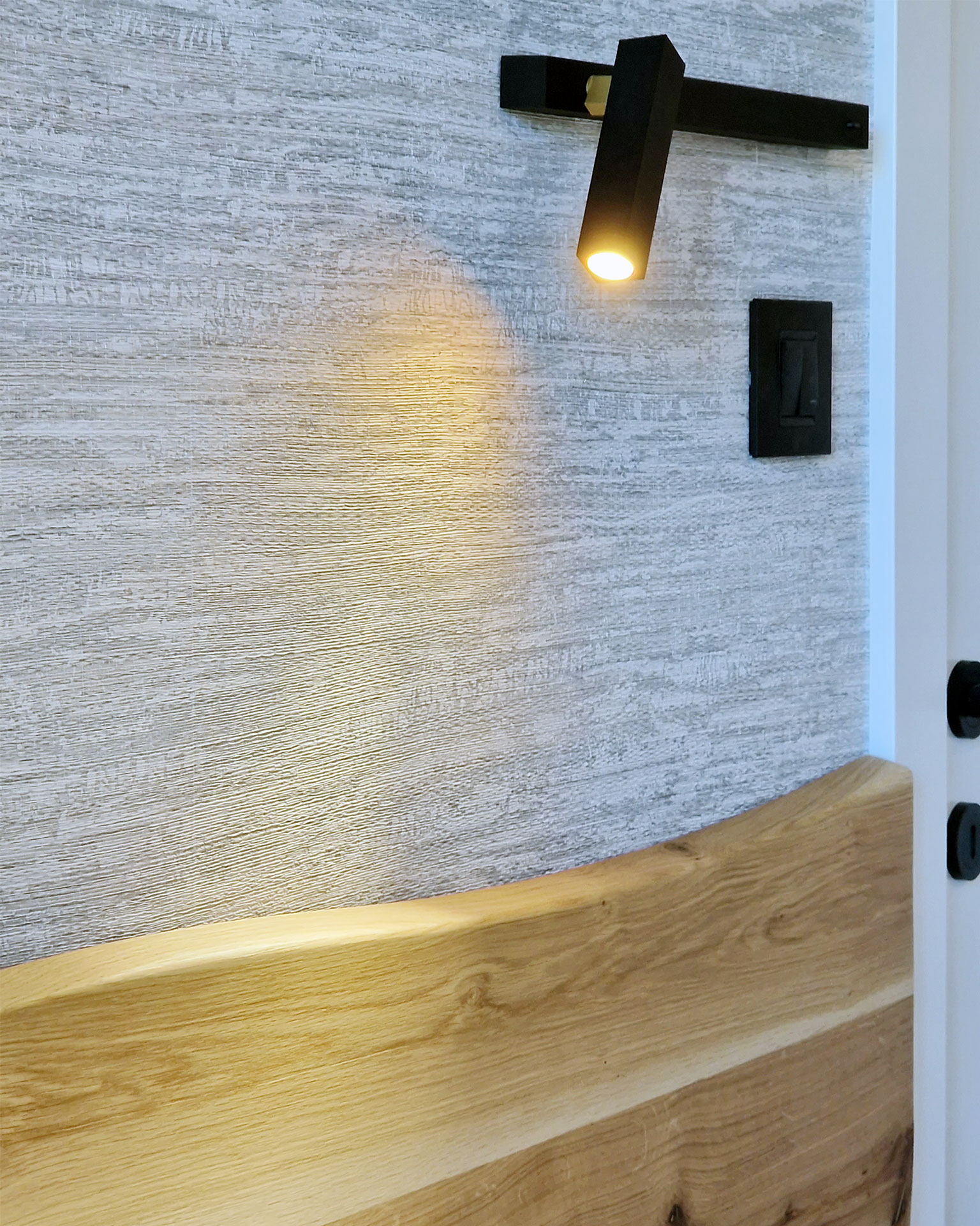 U ovom primeru pokazaćemo vam kako se jedan komad prirodnog drveta savršeno uklopio u moderan enterijer jedne spavaće sobe. U pitanju je live edge uzglavlje kreveta.