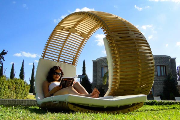 Oblik ležaljke pod imenom Loopita Bonita ne samo da ima estetsku funkciju već je i praktičan. Naime, zahvaljujući školjkastoj konstrukciji koja prolazi iznad vaše glave, bićete u isto vreme i zaštićeni od jakog sunca.