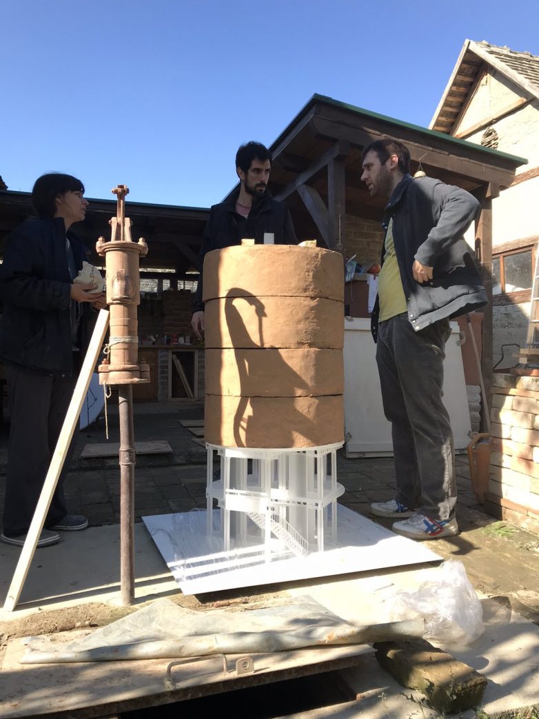 Uz par trikova saradnika iz radionice Proto, iznad te tanane baze naslonili su deset cilindara-spratova (težine od po tridesetak kilograma) izrađenih od mešavine zemlje i slame (eng. lightclay) u čemu je značajno pomogla arhitektinja Dragana Kojičić, specijalista za zemljanu arhitekturu.