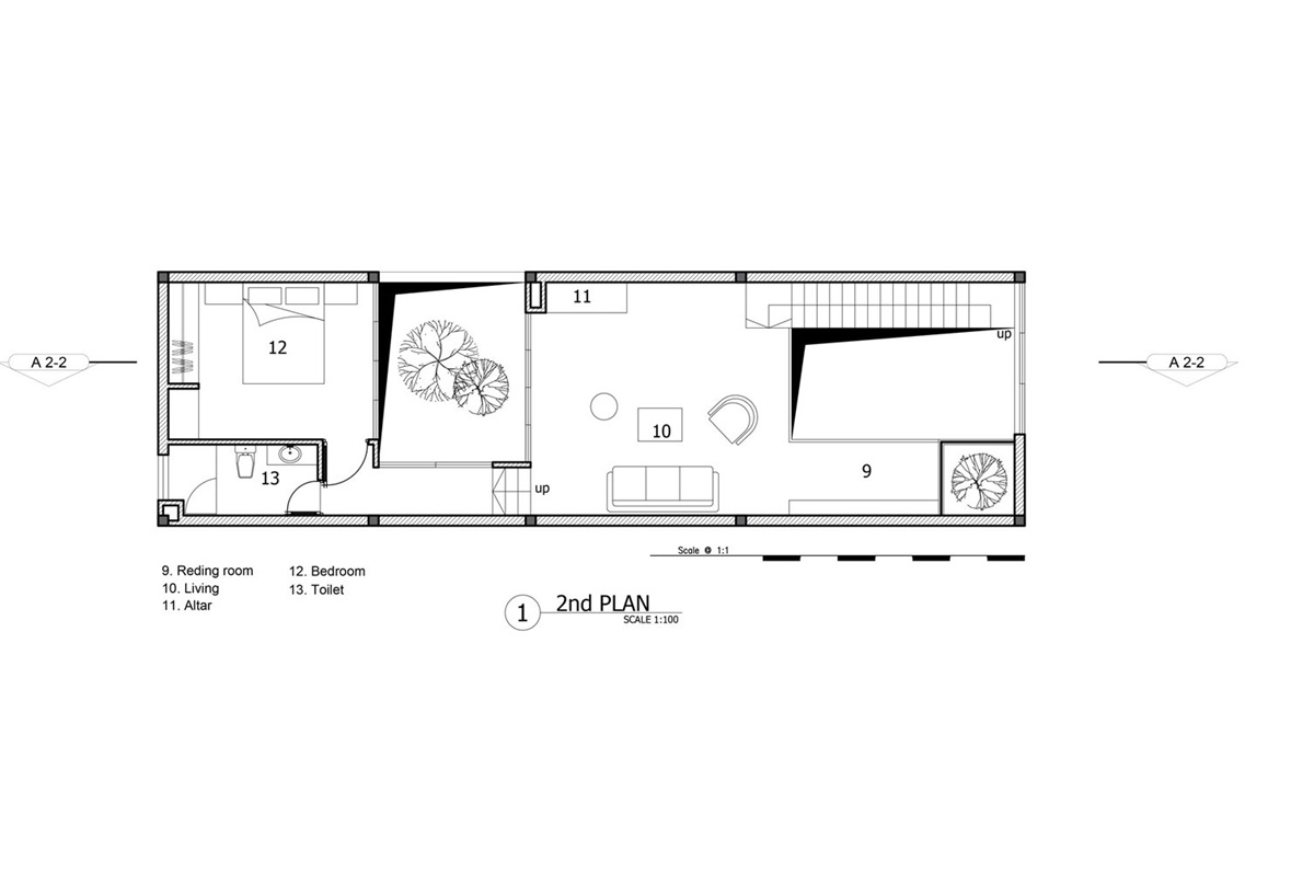Pošto žive u gusto naseljenoj zoni, otvaranje kuće ka komšiluku nije dolazilo u obzir, a kako su dimenzije kuće po tamošnjim propisima svedene na samo 5×20 metara, dizajniranje svetlog i komfornog prostora odjednom se namestilo kao izazov. No, To Huu Dung je celu ideju o klasičnoj kući s dvorištem okrenuo naopačke i od nje napravio zaista nešto unikatno.