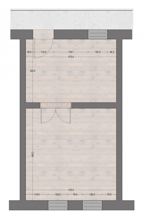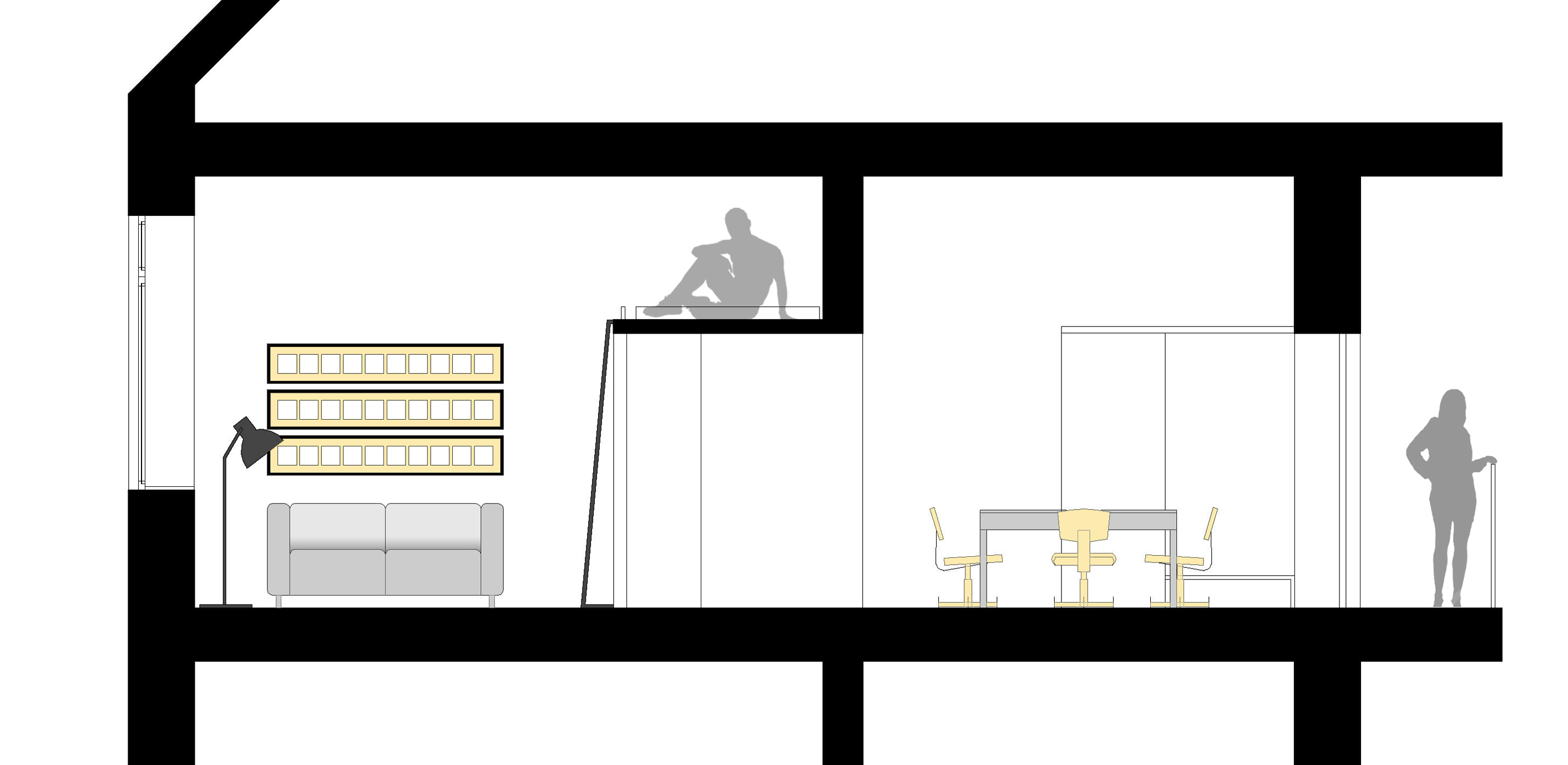 Najveći izazov bio je stvoriti dva zasebna prostora kako ne bi dolazilo do mešanja funkcija, a istovremeno ne remeteći postojeću geometriju stana. Takođe, prvobitno stanje stana nije sadržalo kupatilo niti kuhinju već je to bilo neophodno implementirati u novoprojektovanje rešenje što je u određenoj meri pružalo slobodu da se on organizuje na način na koji je to i urađeno.