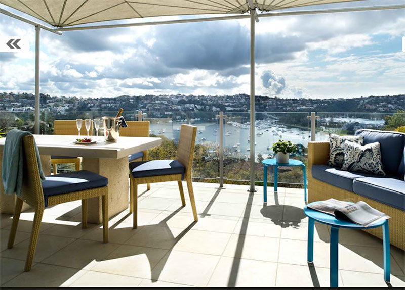 Arhitekta Brett Mickan upotrebio je više nijansti plave u kombinaciji s neutralnom bež i sivom kako bi stan s pogledom na more učinio luksuznim a u isto vreme vrlo prijatnim.