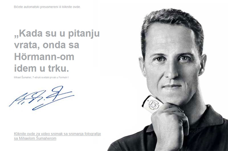 Najuspešniji vozač Formule 1 svih vremena zaštitno je lice internacionalne kompanije za proizvodnju kućnih i garažnih vrata Hörmann.