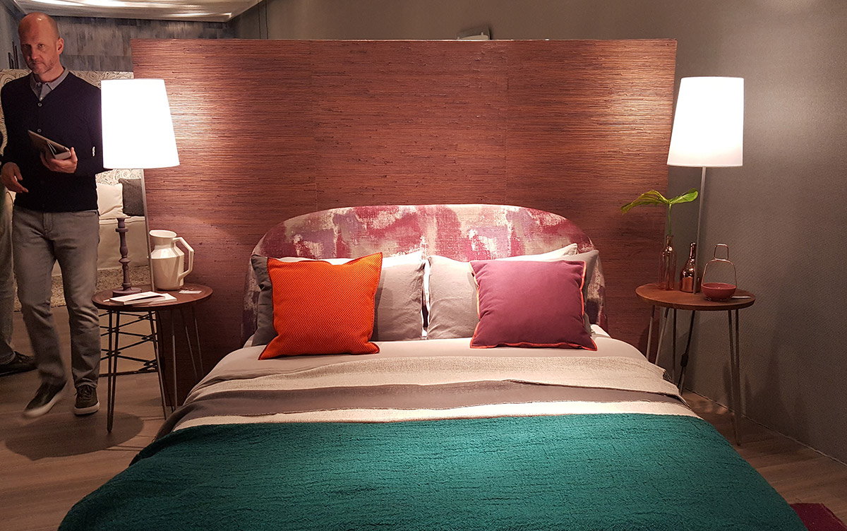 Tapacirana uzglavlja, ali i tapacirani nameštaj kao što su komodice i natkasne, videli smo prilikom na štandu italijanskog brenda Alberta.