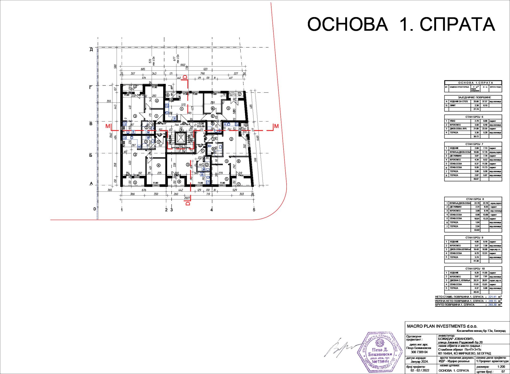 Ukupna BGRP nadzemnih etaža je 1.466 m², dok ukupna BGRP objekta (podzemno i nadzemno) iznosi 1.954 metara kvadratnih.