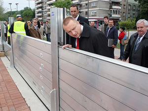 Probnom montiranju nove opreme prisustvovali su predsednik Vlade Vojvodine Bojan Pajtić i gradonačelnik Novog Sada Igor Pavličić koji su istakli da je odbrana od poplava u Novom Sadu u poslednje dve godine podignuta na znatno viši nivo.