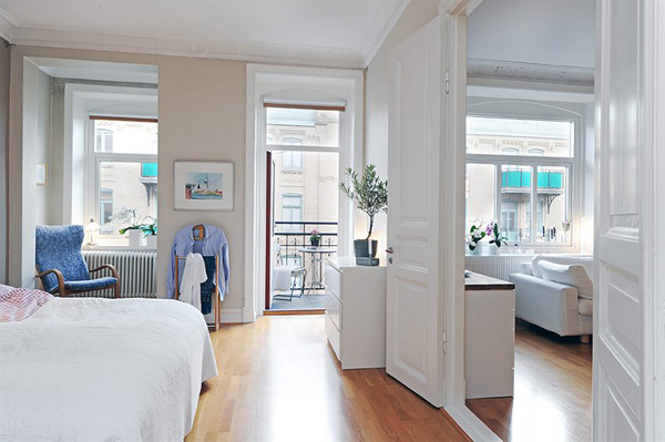 Zahvaljujući velikim prozorskim otvorima, svetlim bojama i odsustnom nepotrebnih detalja, ovaj stan je izuzetno prozračan, svetao i prijatan.
