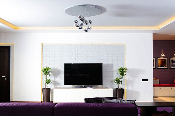 Apartman u Ukrajini dizajniran je sa akcentom na jarke boje i nameštaj modernih radnih linija. Pored ljubičaste, pojavljuje se plava i bela boja.
