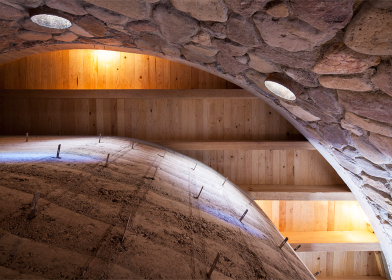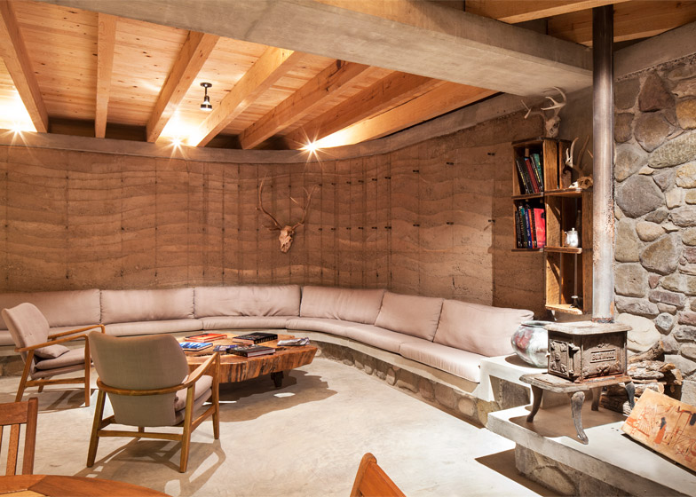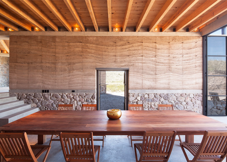 Kuću karakteriše i velika količina kamena – lokalnog, naravno. Lomljeni kamen slagan je u zidove i posle zalivan krečnim malterom. Kombinacijom kamena i nabijene zemlje stvoreni su zidovi koji održavaju temperaturu u prostorijama prijatnim čak i pri visokim meksičkim temperaturama. Zbog toga ova moderna pećina nema klima-uređaje!