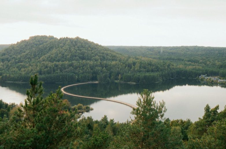 U jedinstvenom pejzažu koji je oblikovan kroz decenije rudarenja, belgijski studio BuroLandschap dizajnirao je plutajući pontonski most koji biciklistima i pešacima pruža izvanredno iskustvo prelaska preko jezera.