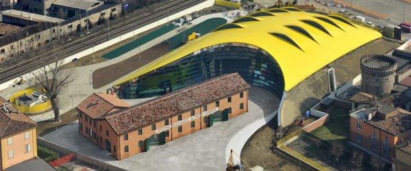 Dobar deo eksponata koji se u njemu mogu pronaći došao je u Modenu iz najvažnijih svetskih kolekcija, a svoj doprinos popunjavanju kolekcije dali su i Modena, Ferrari, Alfa Romeo i Fiat. Modernu zgradu sa prepoznatljivim žutim krovom dizajnirao je poznati češki arhitekta Jan Kaplický koji je veći deo svog života proveo u Velikoj Britaniji gde je i preminuo 14. januara 2009. u 71. godini života.