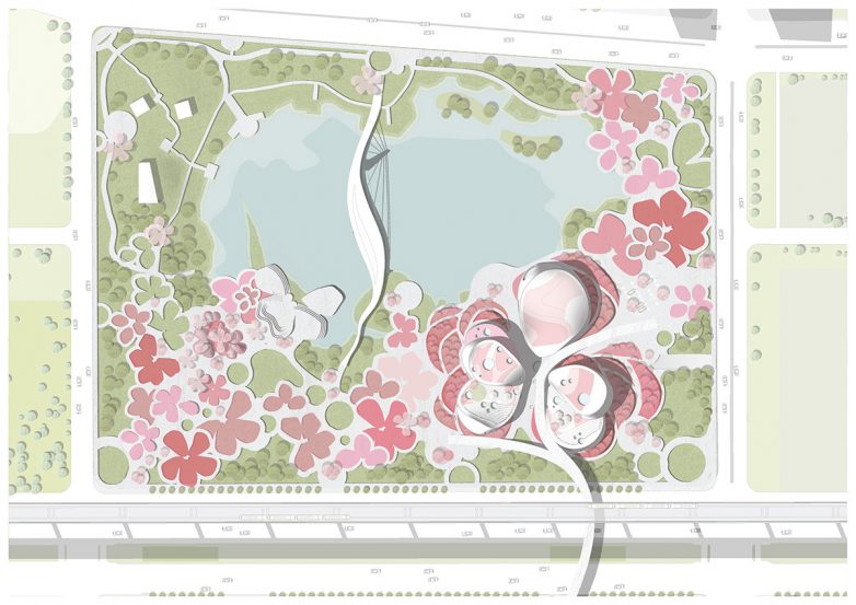 „Preklapanjem volumena koji imaju formu nalik cvetu, stvaraju se veze koje prave fino zasenčenje ambijente ali i natkrivene prostore. Cvetne forme koje se javljaju u parku formiraju njegov novi identitet.“, dodaje se u saopštenju.