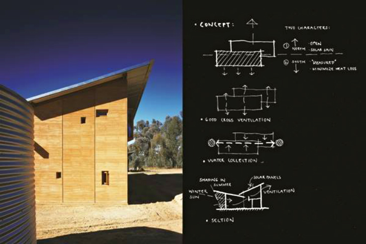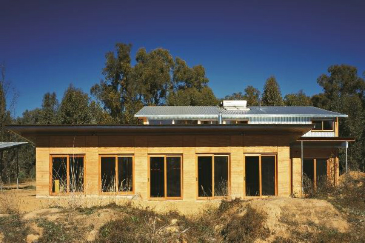 Kuća od naboja čiji projekat potpisuje studio Steffen Welsh Architects napravljena je na mestu gde nema ni vode ni struje. Jedino čega ima je zemlja, sunce i lep pogled. Zbog toga je ova kuća napravljena tako da sama generiše struju putem solarnih panela kao i da se rashlađuje putem pažljivo osmišljenog sistema prirodne ventilacije promajom. Potrebe za klimatizacijom nema!