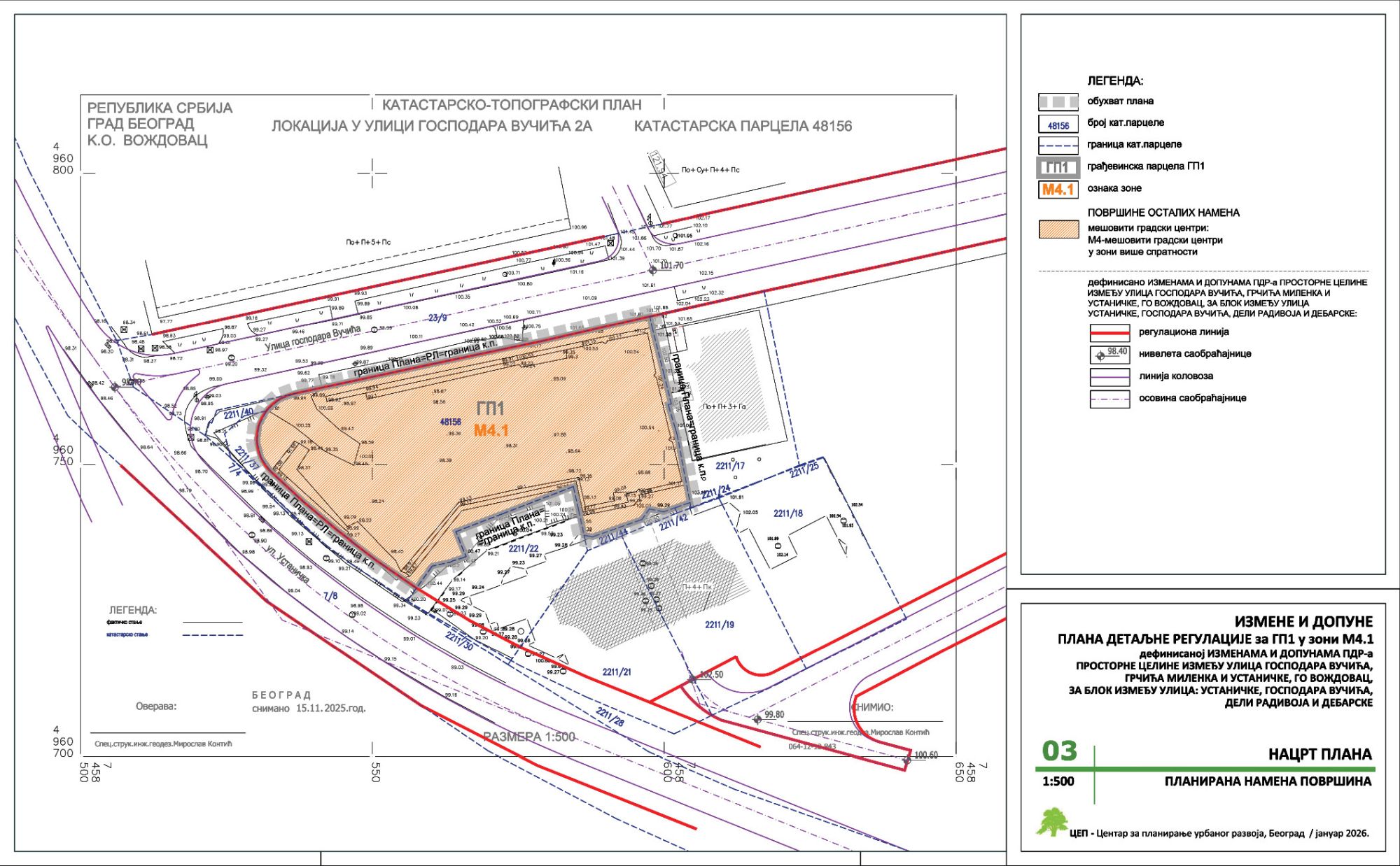 Izradu Nacrta izmena i dopuna PDR-a prostorne celine na Voždovcu naručilo je preduzeće Maestro residence d.o.o. iz Beograda, obrađivač plana je beogradski Centar za planiranje urbanog razvoja – CEP, dok je kao odgovorni urbanista potpisana Zorica Šljukić, dia. Javni uvid u ovaj planski dokument omogućen je do 24. februara 2026. godine.