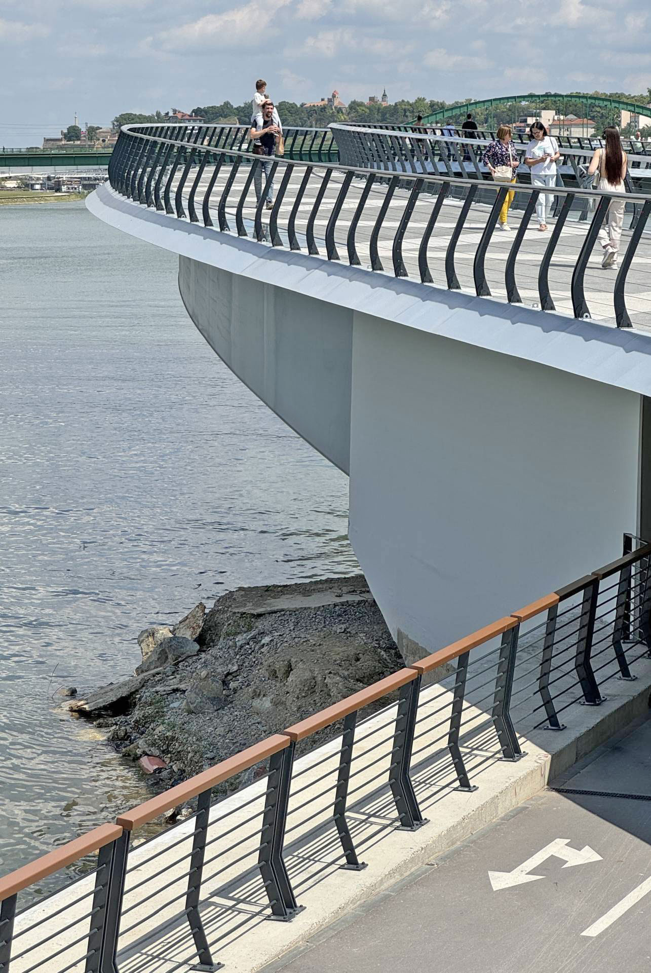 Što se tiče biciklista, za njih je rezervisana posebna biciklistička staza koja prolazi ispod mostića. Treba napomenuti da ni nakon mesec i po dana od otvaranja Selfi mosta još uvek nisu otvorene sve pristupne staze, jer se u neposrednoj blizini nalazi gradilište Kule Beograd.