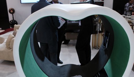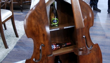 Kontrabas koji služi za skladištenje pića, velika sofa u obliku rolšue, velika jabuka za sedenje su samo neki od bizarnih komada nameštaja koji se mogu videti na sajmu.