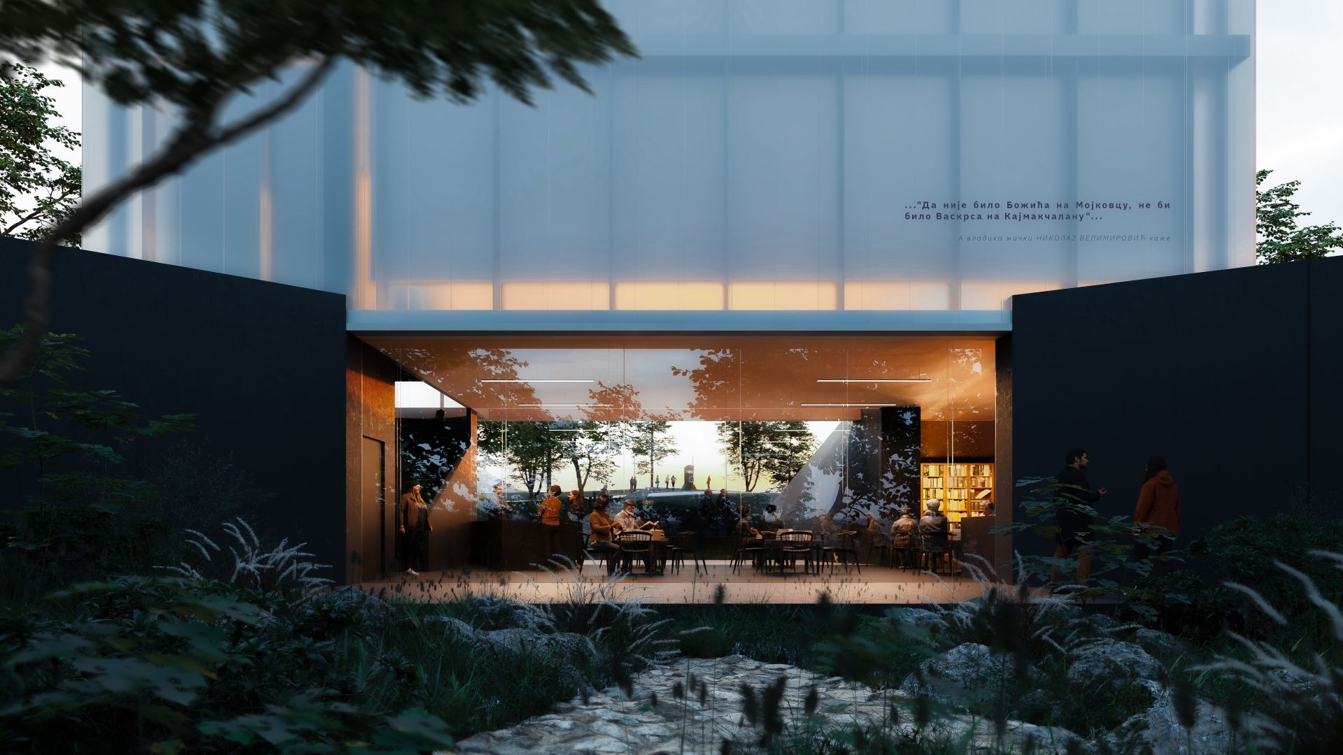 „Rad optimalno koristi pad terena i integriše prilaz, amfiteatar i memorijalni zid, ističući ideju sabirnosti, a dobro pozicioniranje i distribucija forme doprinose utisku neodvojivosti objekta od zatečene topografije i ambijenta same lokacije, što je ocenjeno kao posebna vrednost projekta“, kaže se u izveštaju.