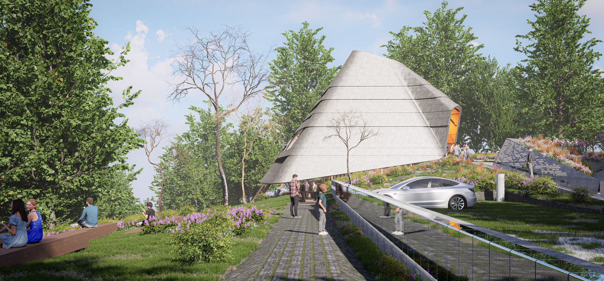 Dobro pozicioniranje i distribucija forme doprinose utisku neodvojivosti objekta od zatečene topografije i ambijenta same lokacije.