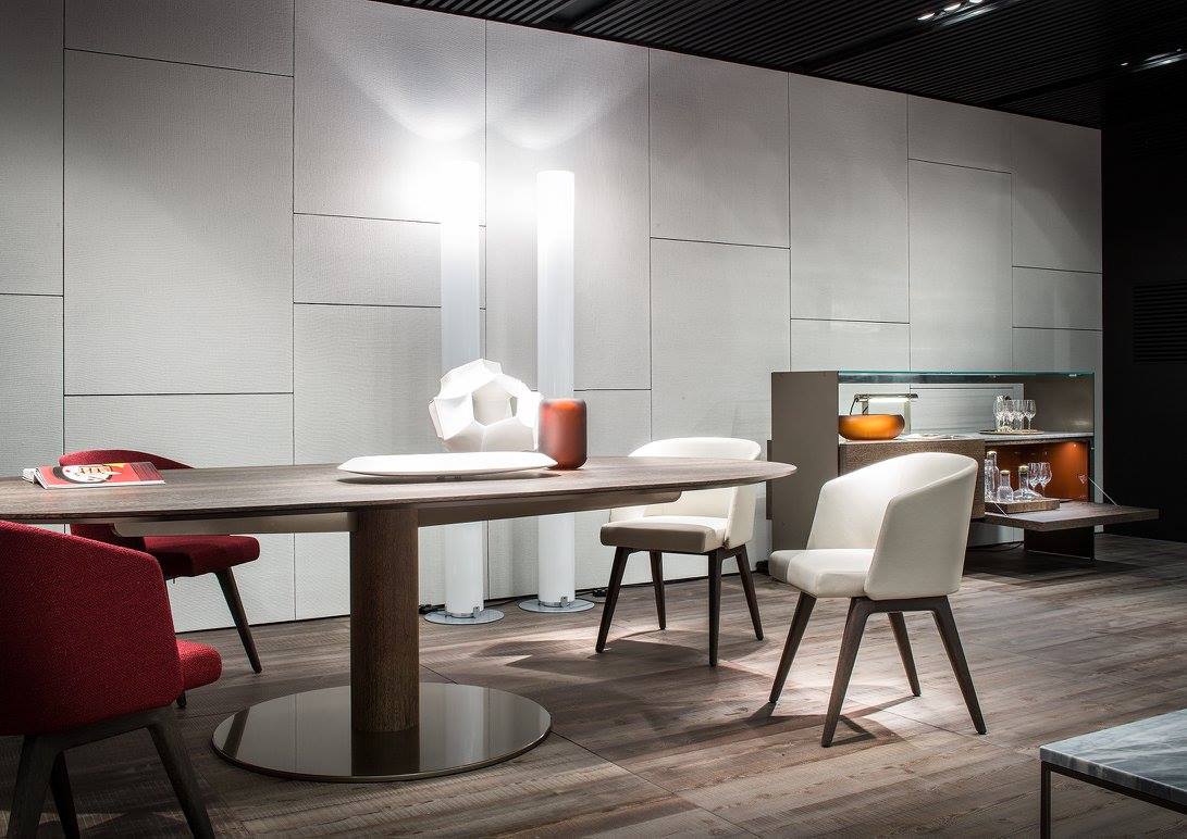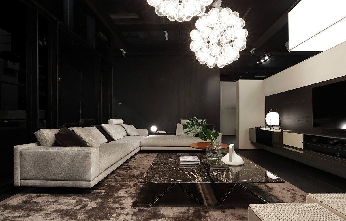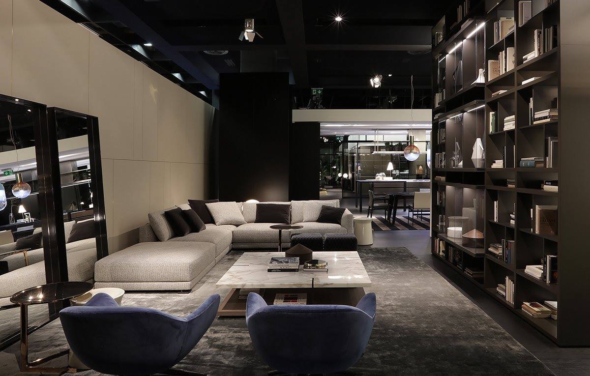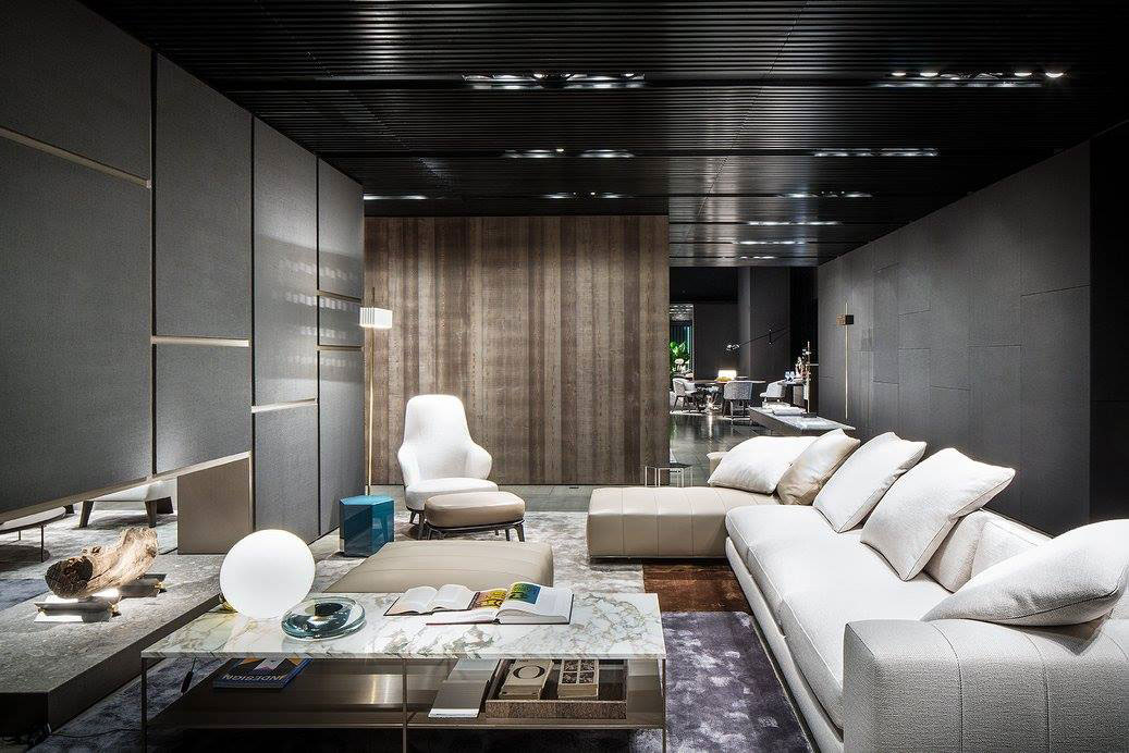 Italijanski Poliform je na sajmu izložio svoje već prepoznatljive modele komadnog nameštaja savremenog dizajna. Mermer na pločama klub stolova, otvorene police sa ugrađenim LED svetlima i veliki komadi udobnih garnitura neutralnih tonova je ono što odlikuje izložene modele.