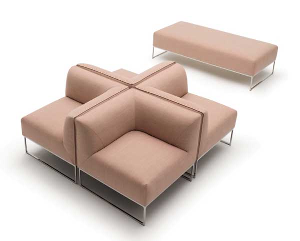 Kompanija Cor predstavila je varijante za kombinovanje ugaonih elemenata sofe sa niskim stolićem. Takođe, njihova serija nameštaja koja se sastoji od dvoseda i dve fotelje dokazuje da se ovi elementi mogu kombinovati i postaviti na više načina.