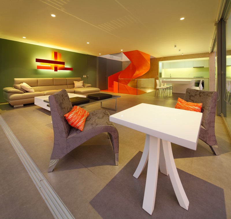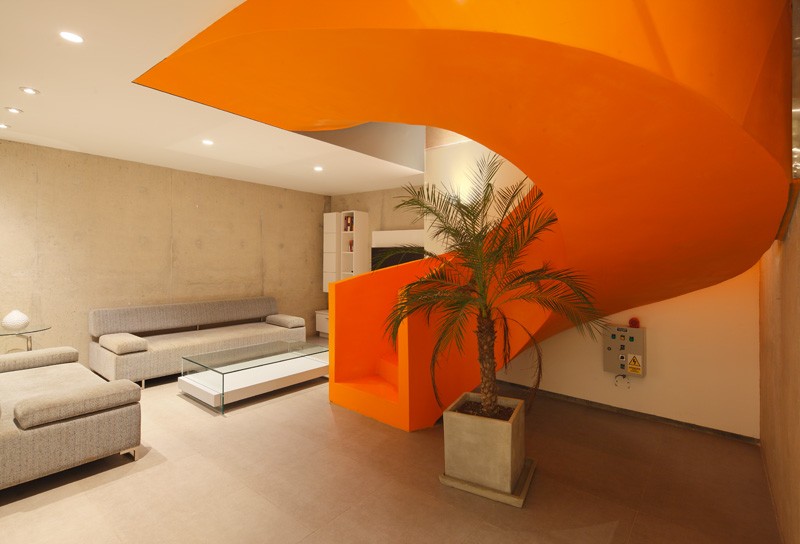Glavni ukras prizemlja, po kome je ova kuća i specifična jeste veliko narandžasto stepenište.