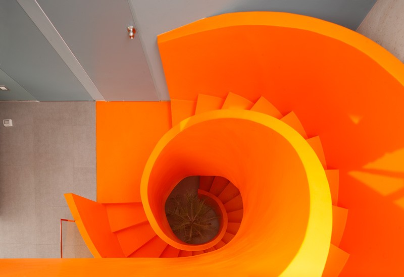 Narandžasto stepenište kao glavni ukras kuće