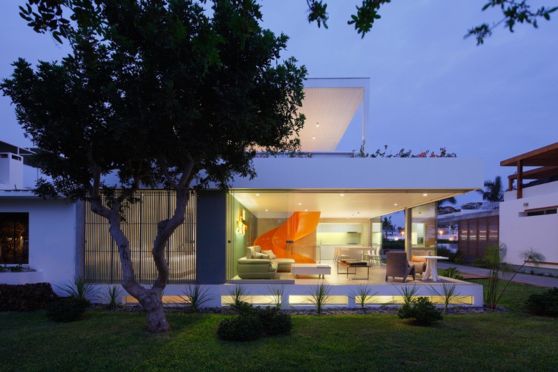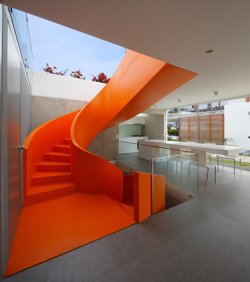 Arhitekta Martin Dulanto Sangalli projektovao je kuću u Limi nazvanu Casa Blanca, koju krasi jarko narandžasto stepenište koje je vidljivo i spolja. Početna ideja je bila da se stvori masivni blok koji će svojim velikim staklenim površinama uneti dinamiku na sva tri nivoa kuće: suteren, prizemlje i terasu na krovu.