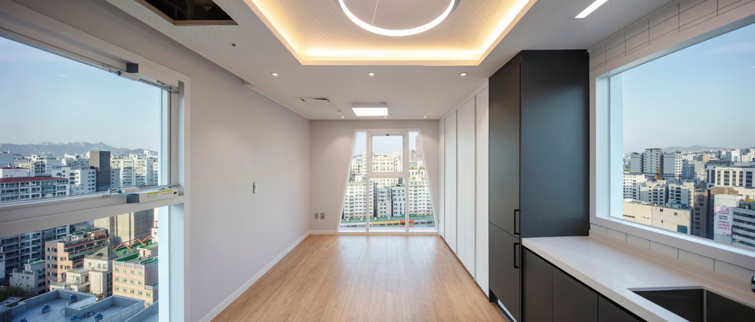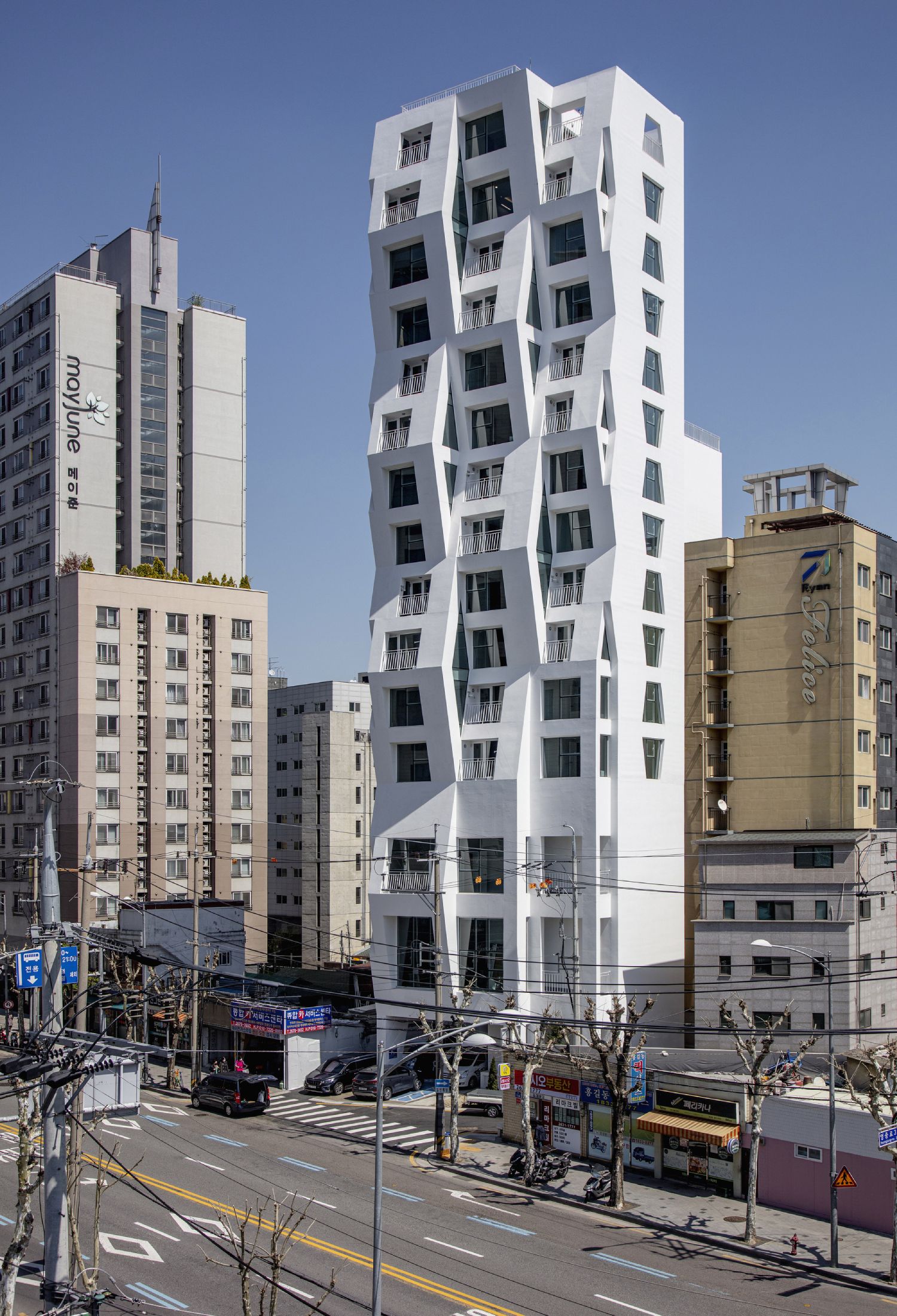 Kako bi se ispoštovao korejski zakon, jedinstvenom trouglastom strukturom dobijeni su preko potrebni balkoni koji funkciju stanovanja podižu na viši nivo.