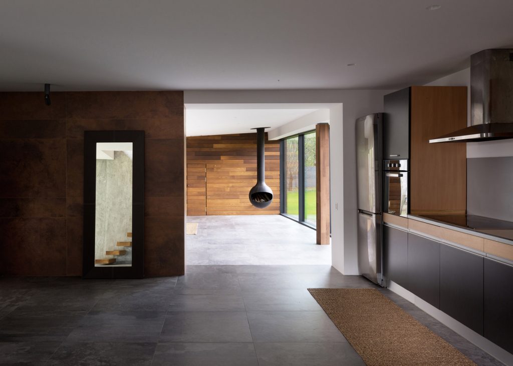 Klijent je insistirao da u kući ne bude televizora. Umesto u TV, gledaće se u kamin koji je okačen o plafon.