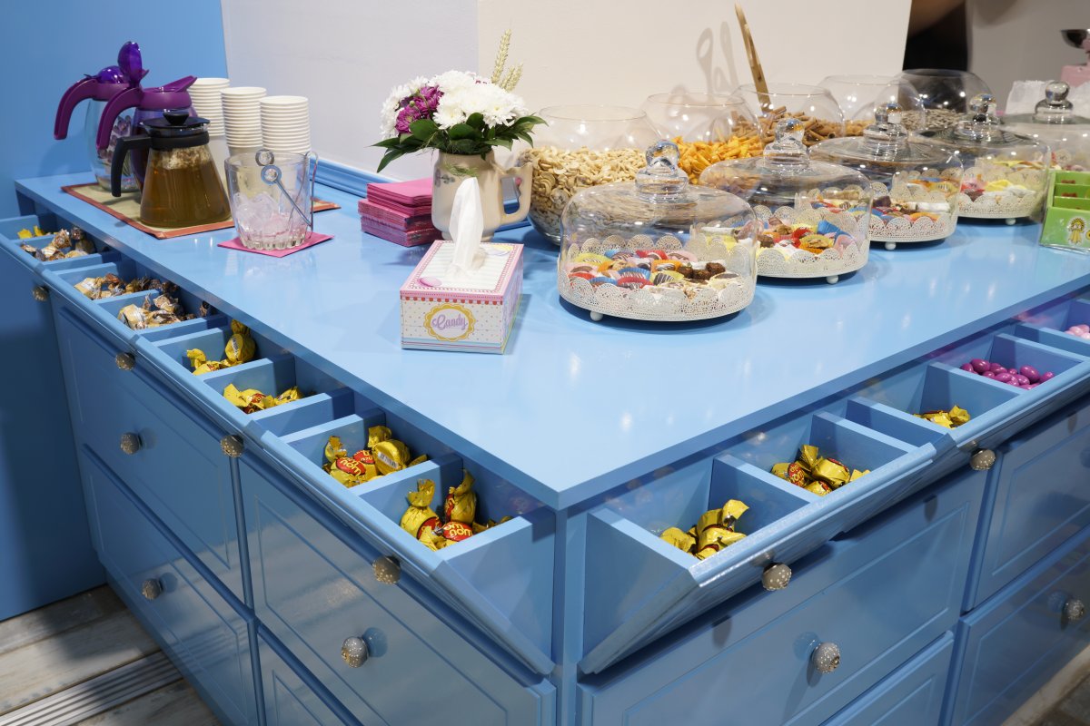 Dizajn enterijera Špajza priča je o malom prostoru u kojem su skrivene sve đakonije: i slatko i kiselo, i domaće i kupovno, i kafe i čajevi. Najukusnije poslastice skrivene su, naravno, na stražnjem delu gornje police.